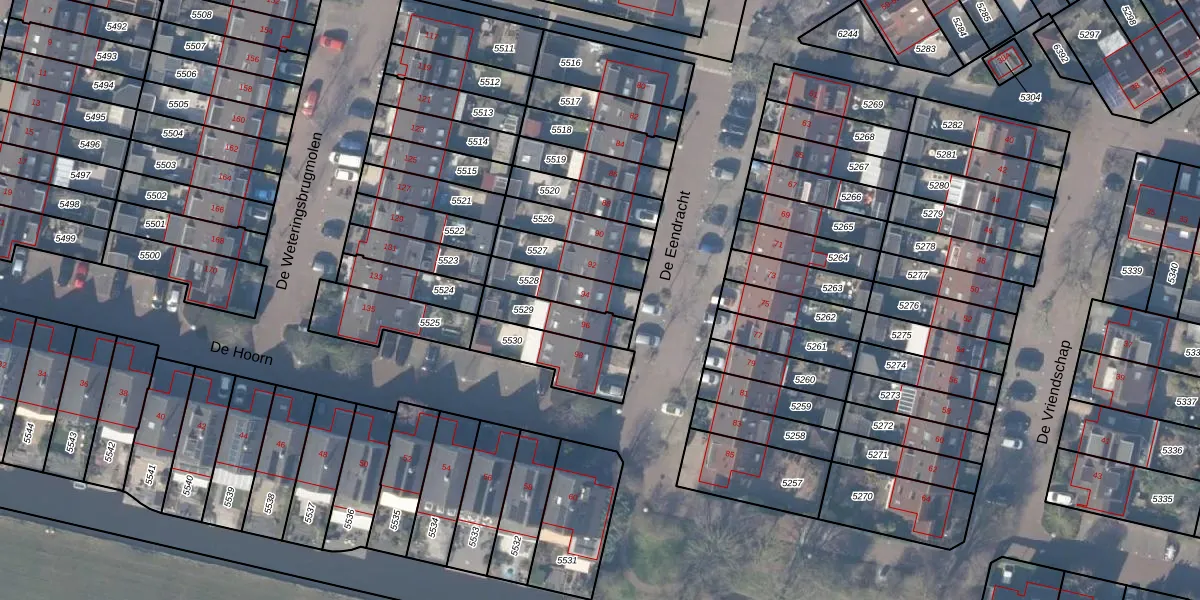 Het perceel waarop De Eendracht 94 staat heeft een oppervlakte van 131 m². Dit is een middelgroot perceel. De perceeloppervlakte wordt geregistreerd door het Kadaster. Gedetailleerde informatie over de maten van dit perceel kunt u vinden in het rapport Kadastrale kaart met maatvoering van De Eendracht 94.