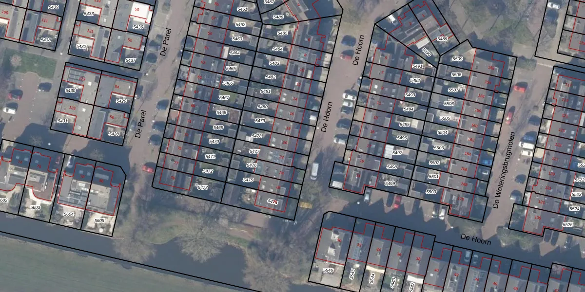 Het perceel waarop De Hoorn 20 staat heeft een oppervlakte van 131 m². Dit is een middelgroot perceel. De perceeloppervlakte wordt geregistreerd door het Kadaster. Gedetailleerde informatie over de maten van dit perceel kunt u vinden in het rapport Kadastrale kaart met maatvoering van De Hoorn 20.
