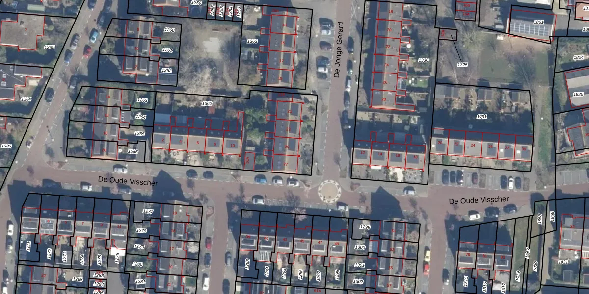 Het perceel waarop De Jonge Gerard 25 staat heeft een oppervlakte van 1402 m². Dit is een zeer groot perceel. De perceeloppervlakte wordt geregistreerd door het Kadaster. Gedetailleerde informatie over de maten van dit perceel kunt u vinden in het rapport Kadastrale kaart met maatvoering van De Jonge Gerard 25.