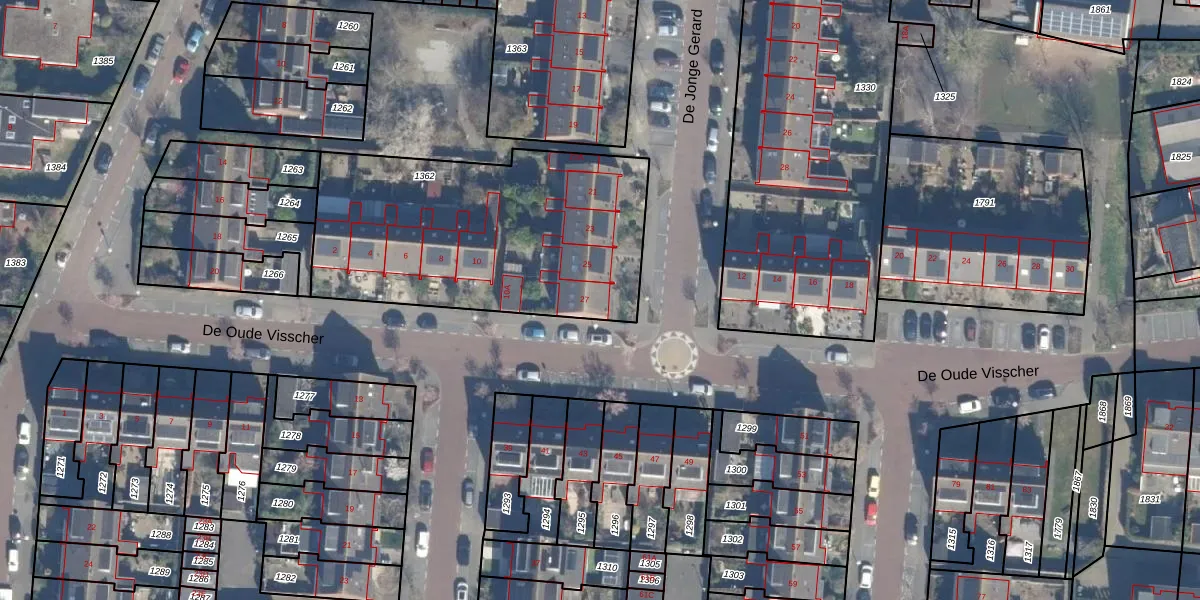 Het perceel waarop De Jonge Gerard 27 staat heeft een oppervlakte van 1402 m². Dit is een zeer groot perceel. De perceeloppervlakte wordt geregistreerd door het Kadaster. Gedetailleerde informatie over de maten van dit perceel kunt u vinden in het rapport Kadastrale kaart met maatvoering van De Jonge Gerard 27.
