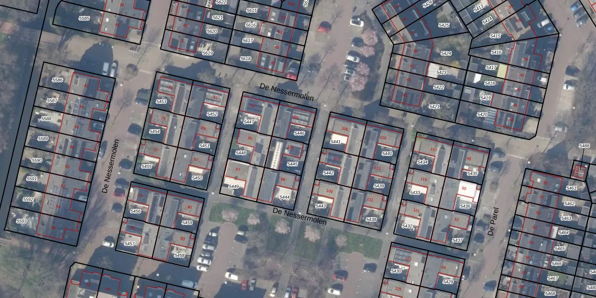 Het perceel waarop De Nessermolen 101 staat heeft een oppervlakte van 137 m². Dit is een middelgroot perceel. De perceeloppervlakte wordt geregistreerd door het Kadaster. Gedetailleerde informatie over de maten van dit perceel kunt u vinden in het rapport Kadastrale kaart met maatvoering van De Nessermolen 101.