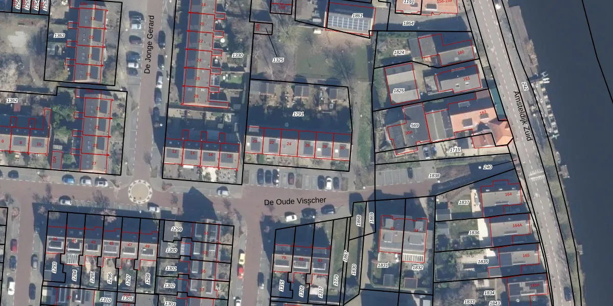 Het perceel waarop De Oude Visscher 26 staat heeft een oppervlakte van 928 m². Dit is een groot perceel. De perceeloppervlakte wordt geregistreerd door het Kadaster. Gedetailleerde informatie over de maten van dit perceel kunt u vinden in het rapport Kadastrale kaart met maatvoering van De Oude Visscher 26.
