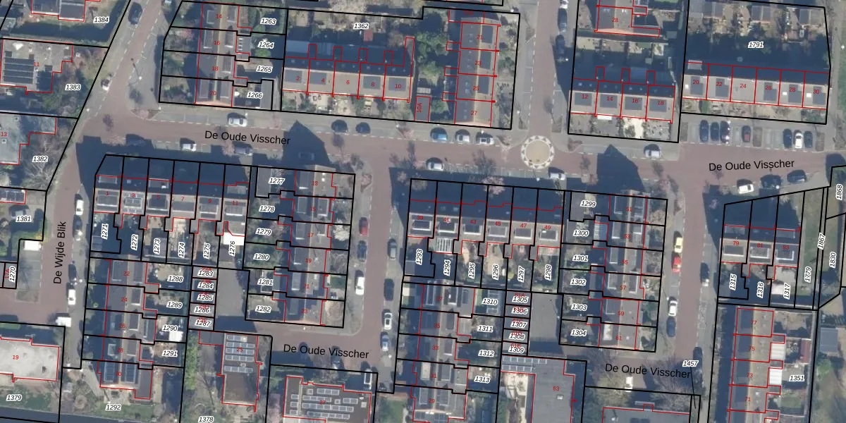 Het perceel waarop De Oude Visscher 39 staat heeft een oppervlakte van 141 m². Dit is een middelgroot perceel. De perceeloppervlakte wordt geregistreerd door het Kadaster. Gedetailleerde informatie over de maten van dit perceel kunt u vinden in het rapport Kadastrale kaart met maatvoering van De Oude Visscher 39.
