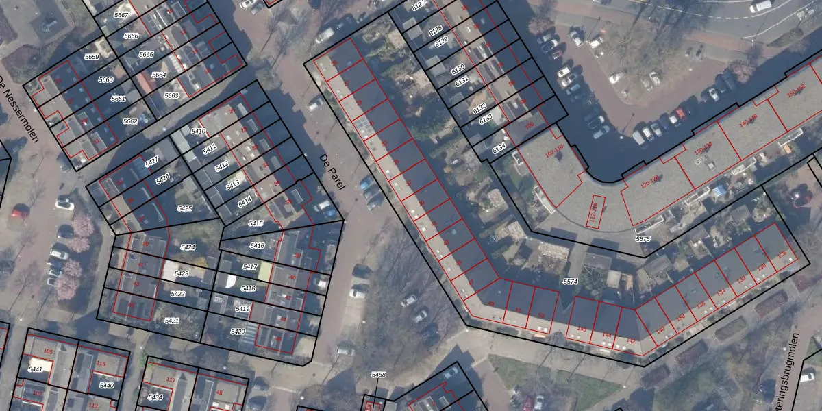 Het perceel waarop De Parel 39 staat heeft een oppervlakte van 3564 m². Dit is een zeer groot perceel. De perceeloppervlakte wordt geregistreerd door het Kadaster. Gedetailleerde informatie over de maten van dit perceel kunt u vinden in het rapport Kadastrale kaart met maatvoering van De Parel 39.