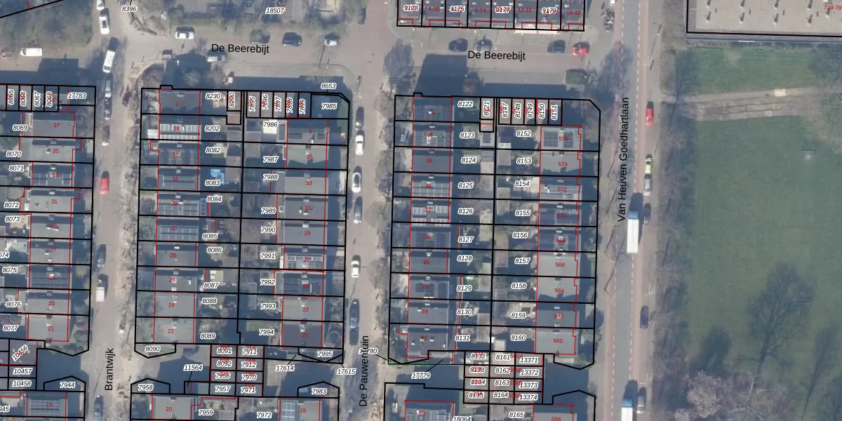 Gebruik de zoekbalk of klik op een perceel voor informatie over de adressen binnen dit perceel.
