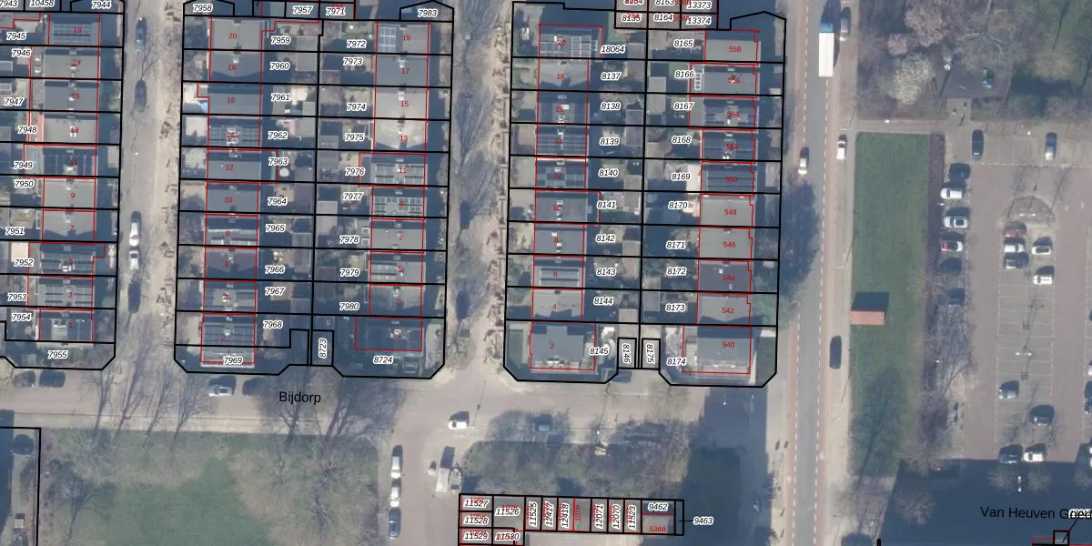 Gebruik de zoekbalk of klik op een perceel voor informatie over de adressen binnen dit perceel.