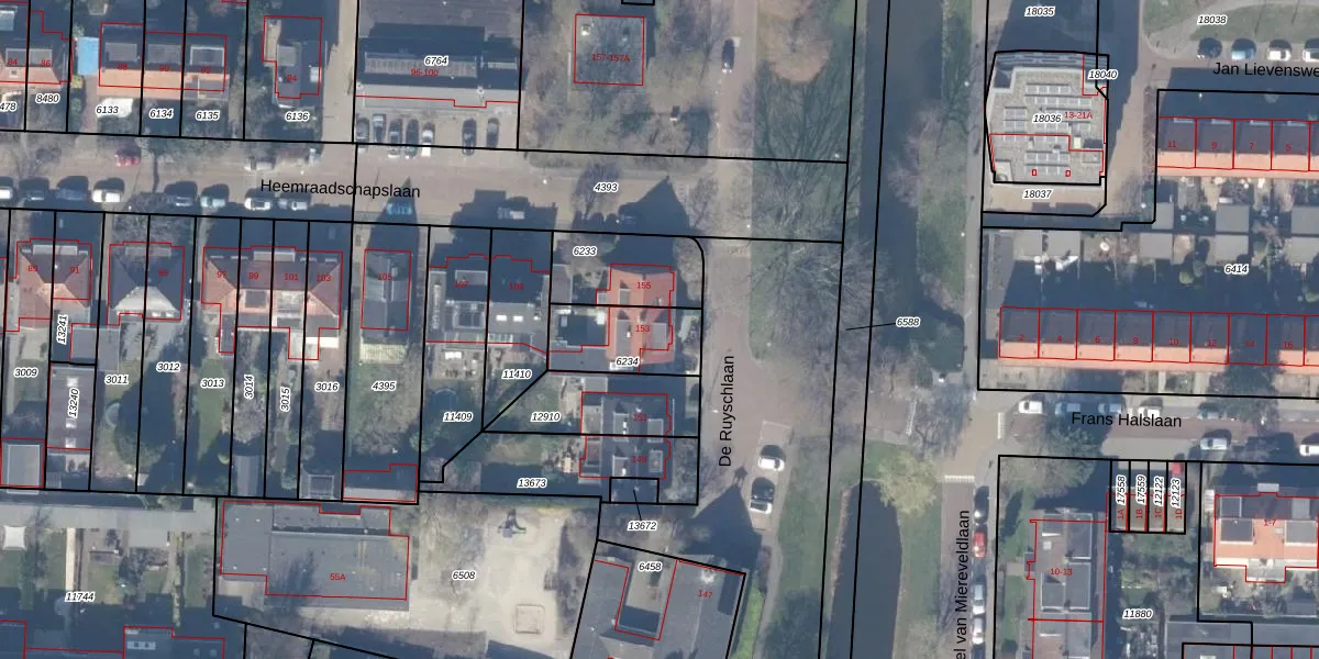 Het perceel waarop De Ruyschlaan 153 staat heeft een oppervlakte van 234 m². Dit is een middelgroot perceel. De perceeloppervlakte wordt geregistreerd door het Kadaster. Gedetailleerde informatie over de maten van dit perceel kunt u vinden in het rapport Kadastrale kaart met maatvoering van De Ruyschlaan 153.