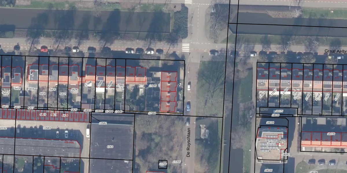 De Ruyschlaan 165 is gelegen op kadastraal perceel ASV00H17945. Deze kadastrale aanduiding is uniek en wordt gebruikt door het Kadaster om eigendomsrechten en andere zakelijke rechten vast te leggen. Het perceel maakt onderdeel uit van de kadastrale gemeente Amstelveen.