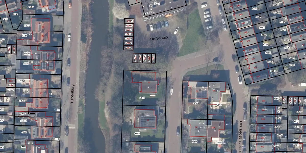 De Schulp 15 is gelegen op kadastraal perceel ASV00H9648. Deze kadastrale aanduiding is uniek en wordt gebruikt door het Kadaster om eigendomsrechten en andere zakelijke rechten vast te leggen. Het perceel maakt onderdeel uit van de kadastrale gemeente Amstelveen.