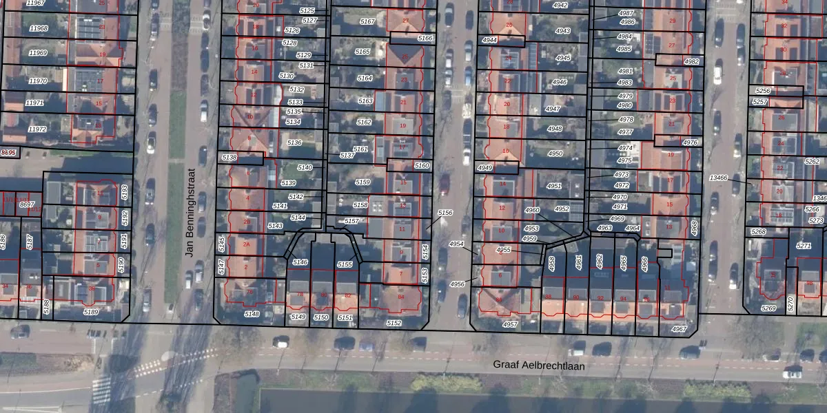 Gebruik de zoekbalk of klik op een perceel voor informatie over de adressen binnen dit perceel.