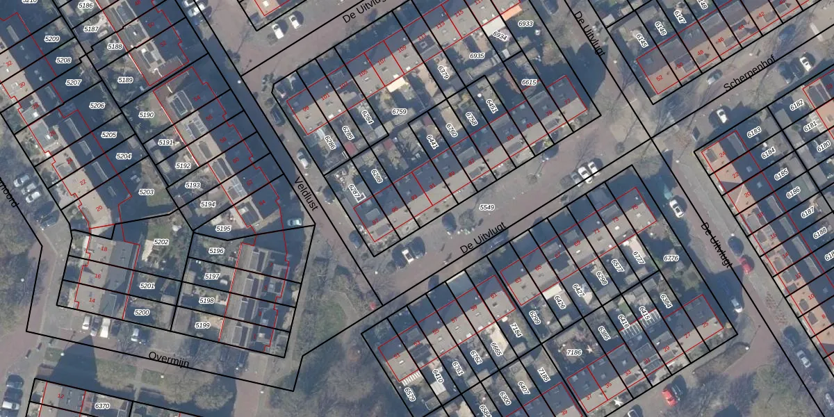 Het perceel waarop De Uitvlugt 93 staat heeft een oppervlakte van 655 m². Dit is een groot perceel. De perceeloppervlakte wordt geregistreerd door het Kadaster. Gedetailleerde informatie over de maten van dit perceel kunt u vinden in het rapport Kadastrale kaart met maatvoering van De Uitvlugt 93.