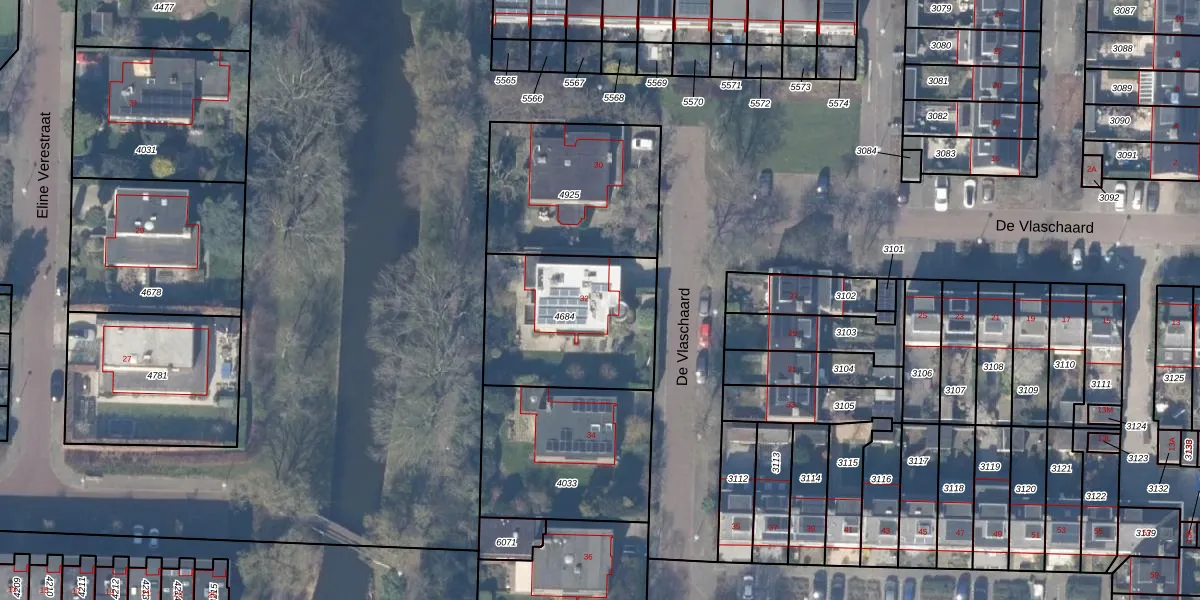 Het perceel waarop De Vlaschaard 32 staat heeft een oppervlakte van 623 m². Dit is een groot perceel. De perceeloppervlakte wordt geregistreerd door het Kadaster. Gedetailleerde informatie over de maten van dit perceel kunt u vinden in het rapport Kadastrale kaart met maatvoering van De Vlaschaard 32.