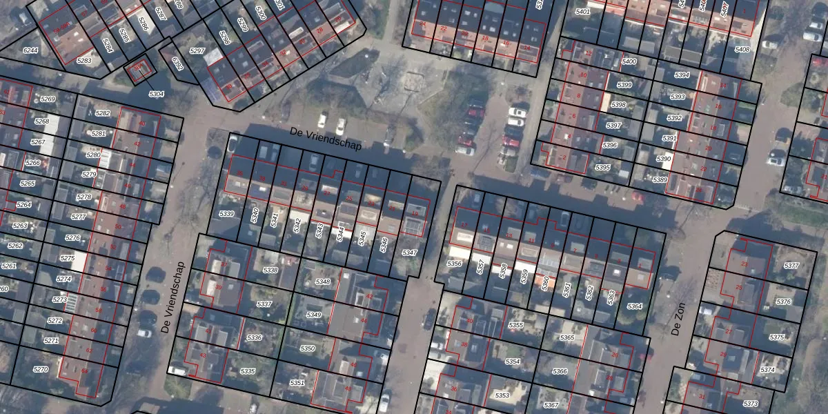 Het perceel waarop De Vriendschap 19 staat heeft een oppervlakte van 178 m². Dit is een middelgroot perceel. De perceeloppervlakte wordt geregistreerd door het Kadaster. Gedetailleerde informatie over de maten van dit perceel kunt u vinden in het rapport Kadastrale kaart met maatvoering van De Vriendschap 19.