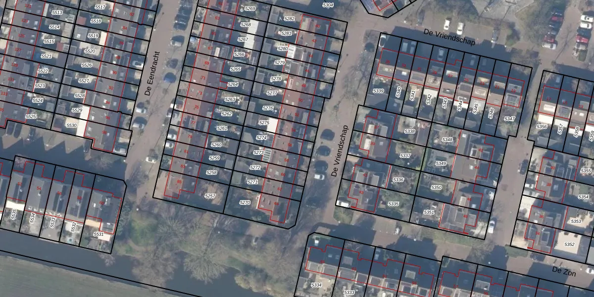 Gebruik de zoekbalk of klik op een perceel voor informatie over de adressen binnen dit perceel.
