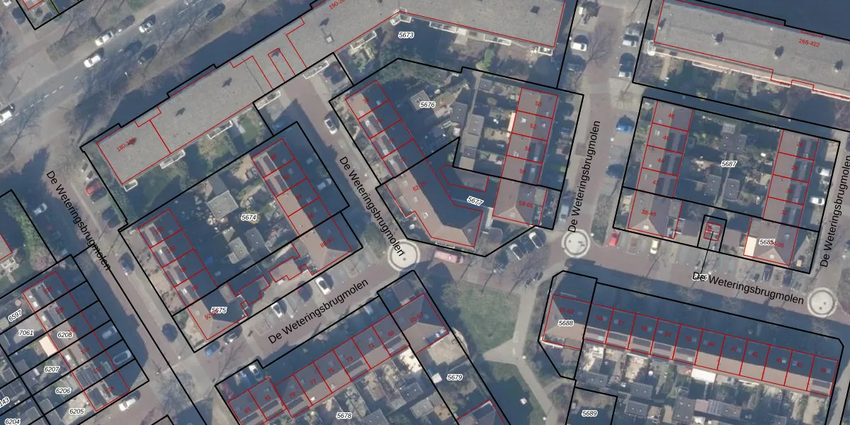 De Weteringsbrugmolen 66 is gelegen op kadastraal perceel ASV00M5677. Deze kadastrale aanduiding is uniek en wordt gebruikt door het Kadaster om eigendomsrechten en andere zakelijke rechten vast te leggen. Het perceel maakt onderdeel uit van de kadastrale gemeente Amstelveen.