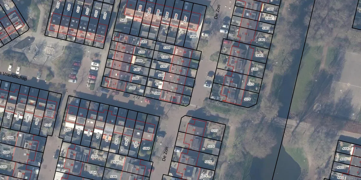 De Zon 22 is gelegen op kadastraal perceel ASV00M5390. Deze kadastrale aanduiding is uniek en wordt gebruikt door het Kadaster om eigendomsrechten en andere zakelijke rechten vast te leggen. Het perceel maakt onderdeel uit van de kadastrale gemeente Amstelveen.