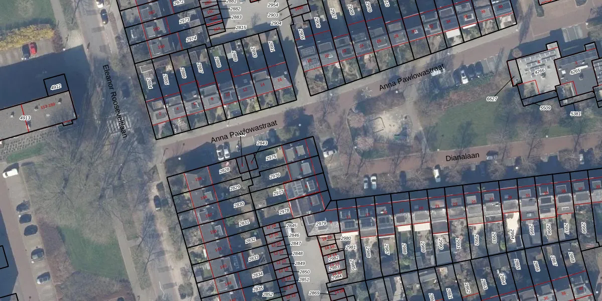 Gebruik de zoekbalk of klik op een perceel voor informatie over de adressen binnen dit perceel.