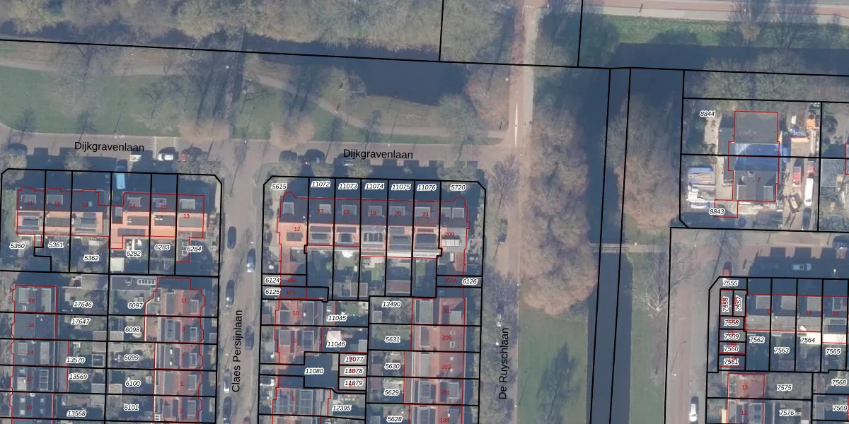 Het perceel waarop Dijkgravenlaan 21 staat heeft een oppervlakte van 165 m². Dit is een middelgroot perceel. De perceeloppervlakte wordt geregistreerd door het Kadaster. Gedetailleerde informatie over de maten van dit perceel kunt u vinden in het rapport Kadastrale kaart met maatvoering van Dijkgravenlaan 21.