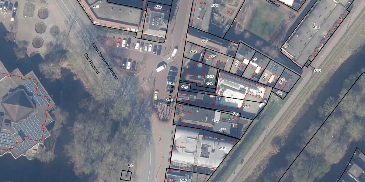 Dorpsstraat 102 is gelegen op kadastraal perceel ASV00G4393. Deze kadastrale aanduiding is uniek en wordt gebruikt door het Kadaster om eigendomsrechten en andere zakelijke rechten vast te leggen. Het perceel maakt onderdeel uit van de kadastrale gemeente Amstelveen.