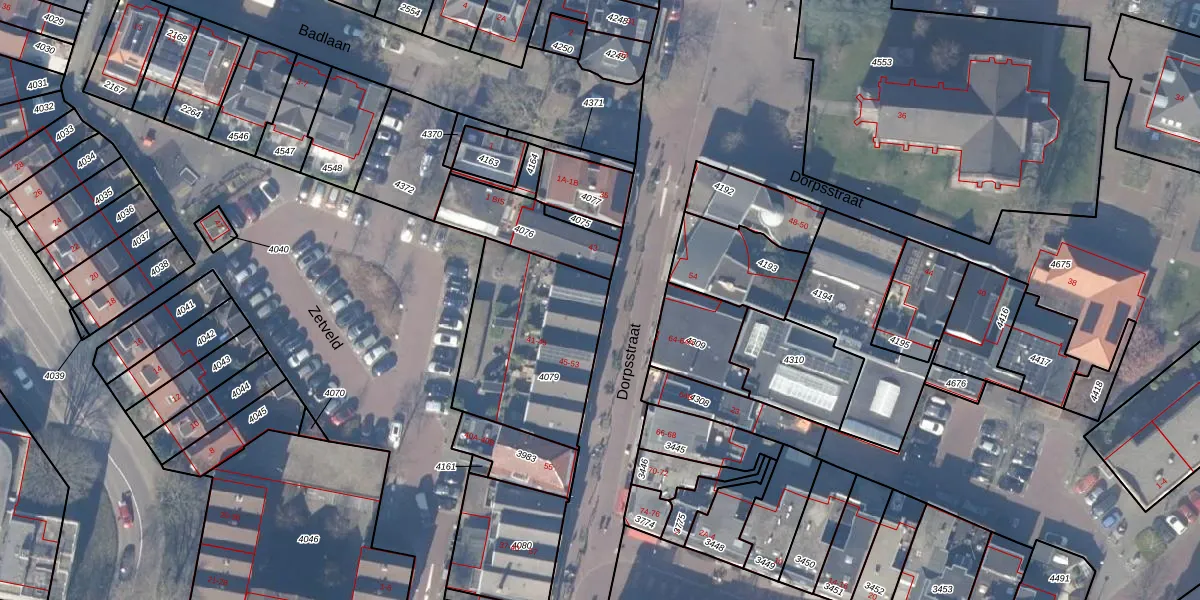 Dorpsstraat 45 is gelegen op kadastraal perceel ASV00G4079. Deze kadastrale aanduiding is uniek en wordt gebruikt door het Kadaster om eigendomsrechten en andere zakelijke rechten vast te leggen. Het perceel maakt onderdeel uit van de kadastrale gemeente Amstelveen.