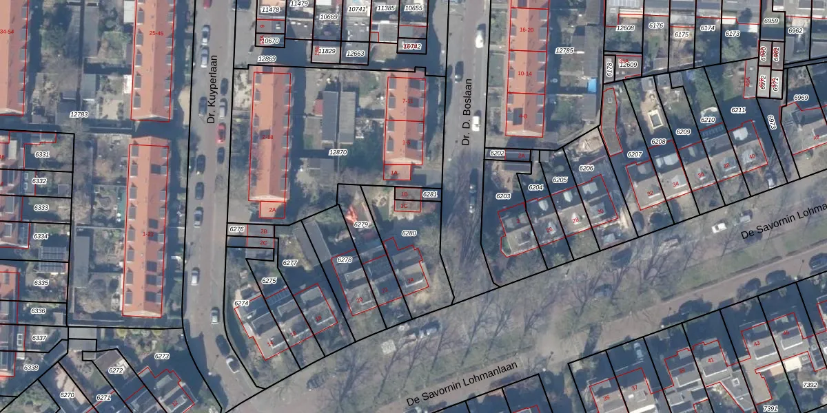 Dr. D. Boslaan 1-C is gelegen op kadastraal perceel ASV00H6280. Deze kadastrale aanduiding is uniek en wordt gebruikt door het Kadaster om eigendomsrechten en andere zakelijke rechten vast te leggen. Het perceel maakt onderdeel uit van de kadastrale gemeente Amstelveen.