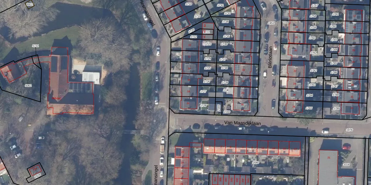 Gebruik de zoekbalk of klik op een perceel voor informatie over de adressen binnen dit perceel.