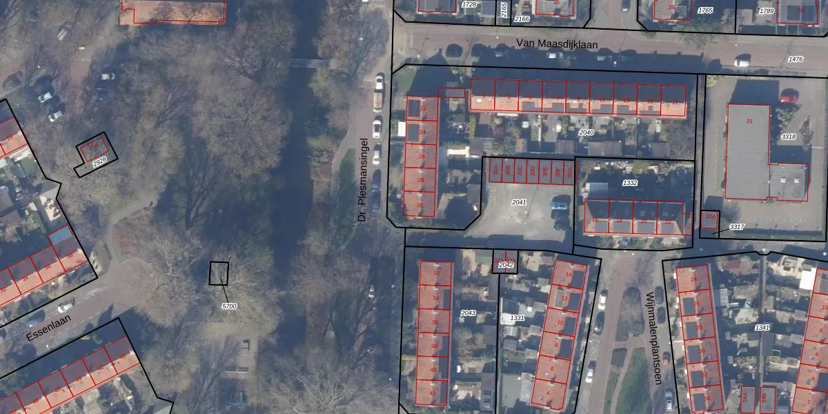 Dr. Plesmansingel 30 is gelegen op kadastraal perceel ASV00M2040. Deze kadastrale aanduiding is uniek en wordt gebruikt door het Kadaster om eigendomsrechten en andere zakelijke rechten vast te leggen. Het perceel maakt onderdeel uit van de kadastrale gemeente Amstelveen.