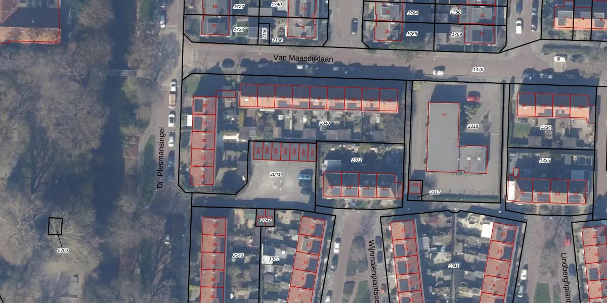 Het perceel waarop Dr. Plesmansingel 30-F staat heeft een oppervlakte van 591 m². Dit is een groot perceel. De perceeloppervlakte wordt geregistreerd door het Kadaster. Gedetailleerde informatie over de maten van dit perceel kunt u vinden in het rapport Kadastrale kaart met maatvoering van Dr. Plesmansingel 30-F.