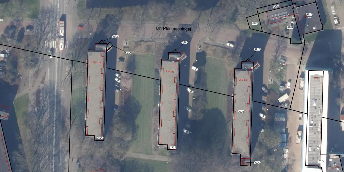 Dr. Plesmansingel 317-B is gelegen op kadastraal perceel ASV00M2322. Deze kadastrale aanduiding is uniek en wordt gebruikt door het Kadaster om eigendomsrechten en andere zakelijke rechten vast te leggen. Het perceel maakt onderdeel uit van de kadastrale gemeente Amstelveen.