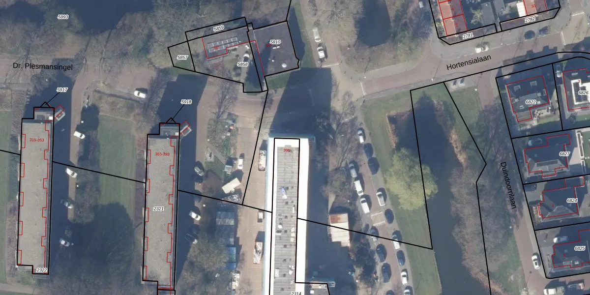 Dr. Plesmansingel 395 is gelegen op kadastraal perceel ASV00M2314. Deze kadastrale aanduiding is uniek en wordt gebruikt door het Kadaster om eigendomsrechten en andere zakelijke rechten vast te leggen. Het perceel maakt onderdeel uit van de kadastrale gemeente Amstelveen.