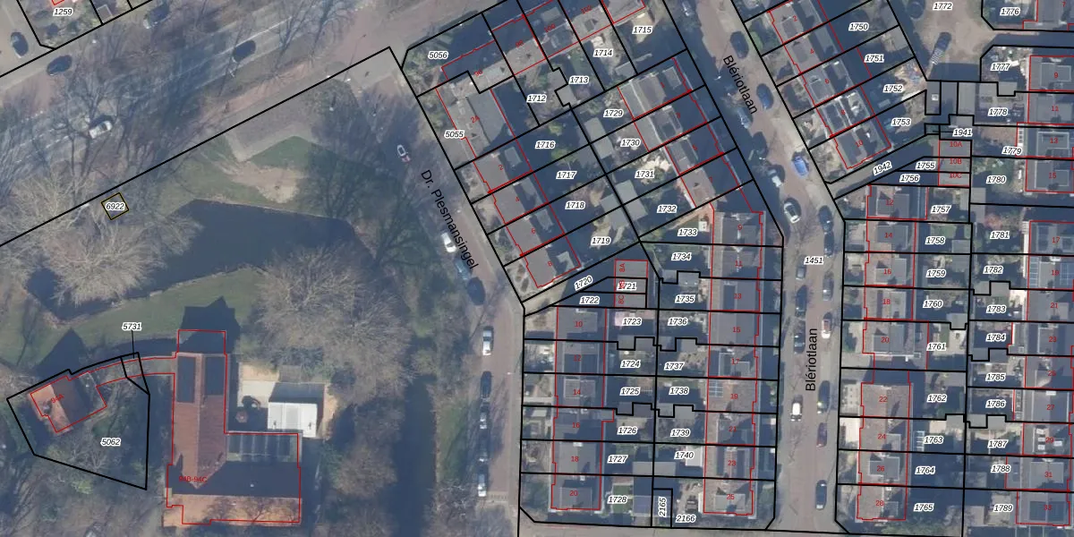 Gebruik de zoekbalk of klik op een perceel voor informatie over de adressen binnen dit perceel.