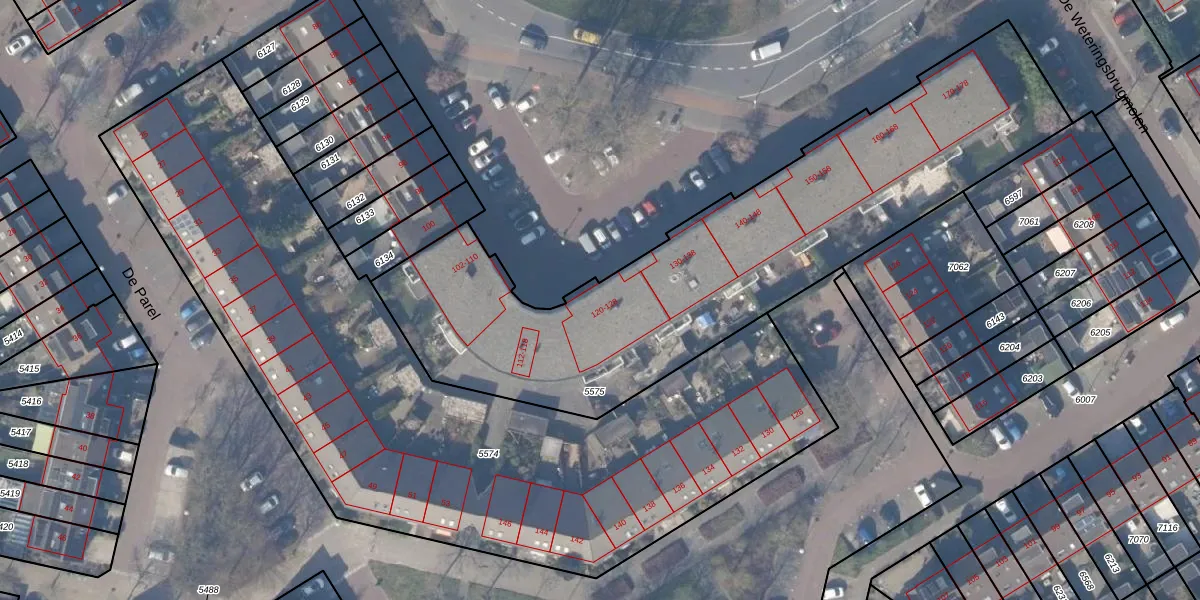 Het perceel waarop Dr. Willem Dreesweg 120 staat heeft een oppervlakte van 2448 m². Dit is een zeer groot perceel. De perceeloppervlakte wordt geregistreerd door het Kadaster. Gedetailleerde informatie over de maten van dit perceel kunt u vinden in het rapport Kadastrale kaart met maatvoering van Dr. Willem Dreesweg 120.