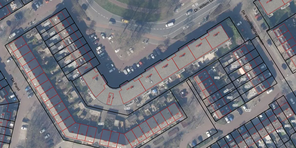 Het perceel waarop Dr. Willem Dreesweg 136 staat heeft een oppervlakte van 2448 m². Dit is een zeer groot perceel. De perceeloppervlakte wordt geregistreerd door het Kadaster. Gedetailleerde informatie over de maten van dit perceel kunt u vinden in het rapport Kadastrale kaart met maatvoering van Dr. Willem Dreesweg 136.