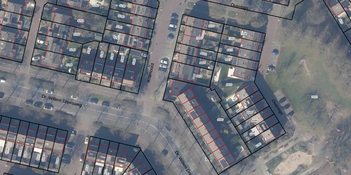 Dr. Willem Dreesweg 17-A is gelegen op kadastraal perceel ASV00M5560. Deze kadastrale aanduiding is uniek en wordt gebruikt door het Kadaster om eigendomsrechten en andere zakelijke rechten vast te leggen. Het perceel maakt onderdeel uit van de kadastrale gemeente Amstelveen.