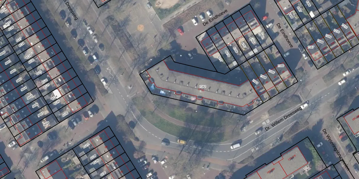 Dr. Willem Dreesweg 57 is gelegen op kadastraal perceel ASV00M7162. Deze kadastrale aanduiding is uniek en wordt gebruikt door het Kadaster om eigendomsrechten en andere zakelijke rechten vast te leggen. Het perceel maakt onderdeel uit van de kadastrale gemeente Amstelveen.