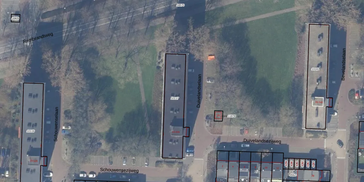 Het perceel waarop Duivelandselaan 39 staat heeft een oppervlakte van 644 m². Dit is een groot perceel. De perceeloppervlakte wordt geregistreerd door het Kadaster. Gedetailleerde informatie over de maten van dit perceel kunt u vinden in het rapport Kadastrale kaart met maatvoering van Duivelandselaan 39.