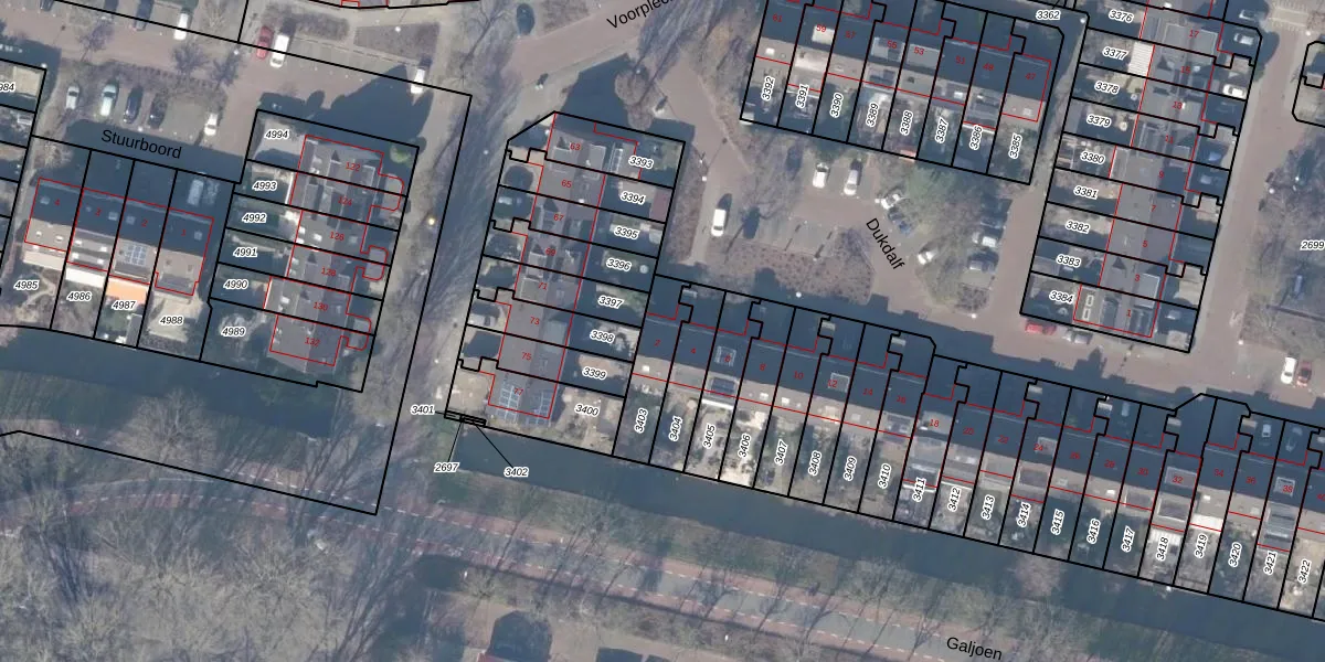 Het perceel waarop Dukdalf 2 staat heeft een oppervlakte van 161 m². Dit is een middelgroot perceel. De perceeloppervlakte wordt geregistreerd door het Kadaster. Gedetailleerde informatie over de maten van dit perceel kunt u vinden in het rapport Kadastrale kaart met maatvoering van Dukdalf 2.