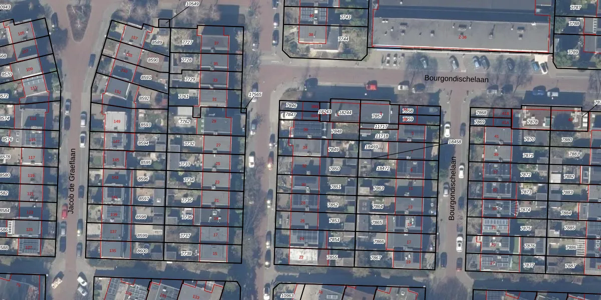 Gebruik de zoekbalk of klik op een perceel voor informatie over de adressen binnen dit perceel.