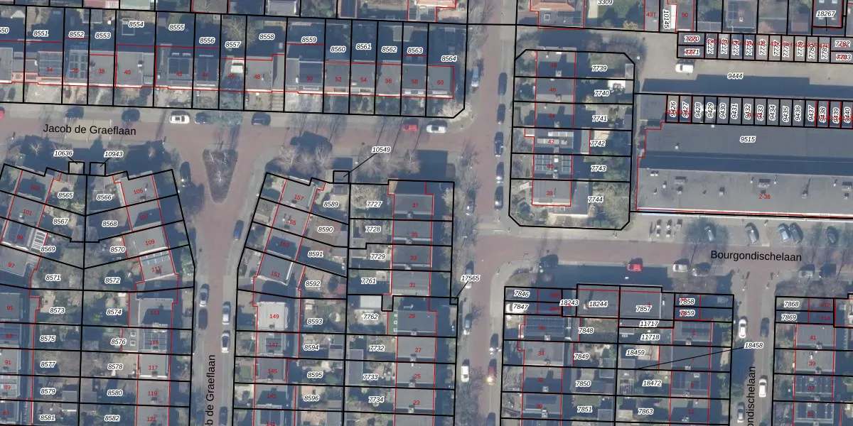 Gebruik de zoekbalk of klik op een perceel voor informatie over de adressen binnen dit perceel.