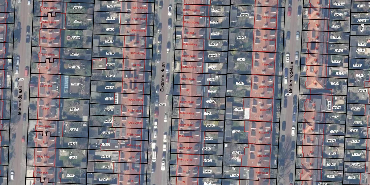 Gebruik de zoekbalk of klik op een perceel voor informatie over de adressen binnen dit perceel.