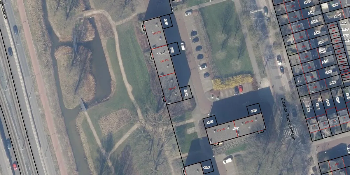Eleanor Rooseveltlaan 191 is gelegen op kadastraal perceel ASV00I4910. Deze kadastrale aanduiding is uniek en wordt gebruikt door het Kadaster om eigendomsrechten en andere zakelijke rechten vast te leggen. Het perceel maakt onderdeel uit van de kadastrale gemeente Amstelveen.