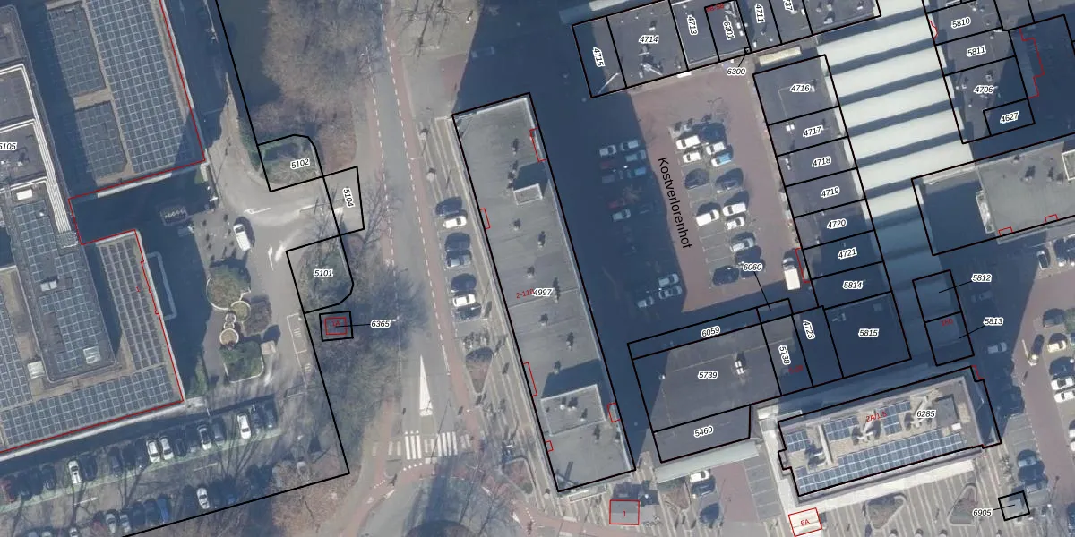 Het adres ligt op het perceel ASV00-I-4997, dat zich in de kadastrale gemeente Amstelveen bevindt. Het perceel is kleiner dan gemiddeld in Amstelveen. Het perceel is 1087 m² groot, terwijl het gemiddelde ligt op 1598,55 m². Het kleinste perceel in de kadastrale gemeente is 0 m² groot. De grootste perceeloppervlakte is 1,78 km². Op het perceel liggen in totaal 56 adressen. In de Basisregistratie Kadaster (BRK) werden de grenzen van het perceel geregistreerd op 15-10-2010.