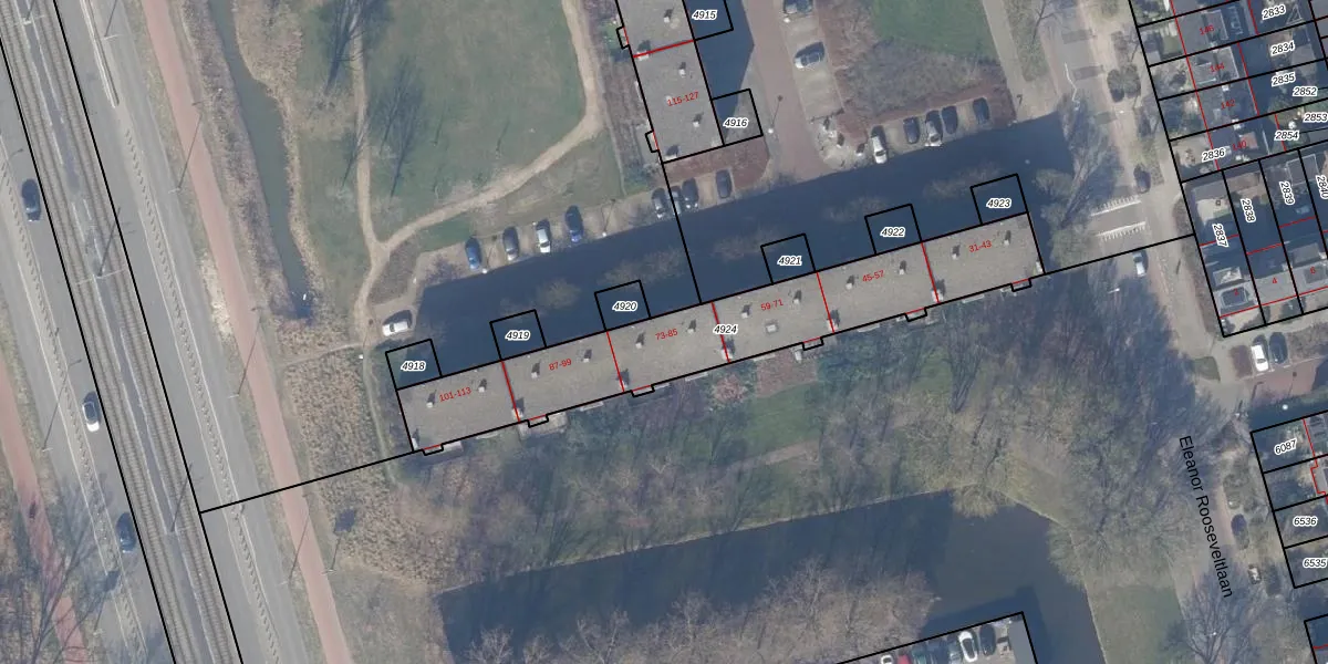 Eleanor Rooseveltlaan 83 is gelegen op kadastraal perceel ASV00I4924. Deze kadastrale aanduiding is uniek en wordt gebruikt door het Kadaster om eigendomsrechten en andere zakelijke rechten vast te leggen. Het perceel maakt onderdeel uit van de kadastrale gemeente Amstelveen.