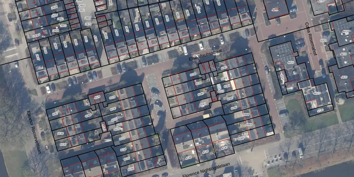 Gebruik de zoekbalk of klik op een perceel voor informatie over de adressen binnen dit perceel.