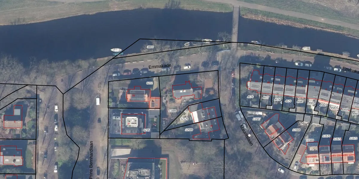 Het perceel waarop Emmakade 1 staat heeft een oppervlakte van 690 m². Dit is een groot perceel. De perceeloppervlakte wordt geregistreerd door het Kadaster. Gedetailleerde informatie over de maten van dit perceel kunt u vinden in het rapport Kadastrale kaart met maatvoering van Emmakade 1.