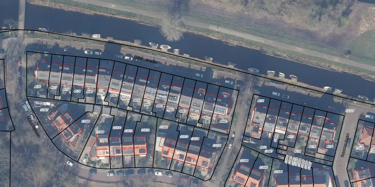 Emmakade 11 is gelegen op kadastraal perceel ASV00H4463. Deze kadastrale aanduiding is uniek en wordt gebruikt door het Kadaster om eigendomsrechten en andere zakelijke rechten vast te leggen. Het perceel maakt onderdeel uit van de kadastrale gemeente Amstelveen.