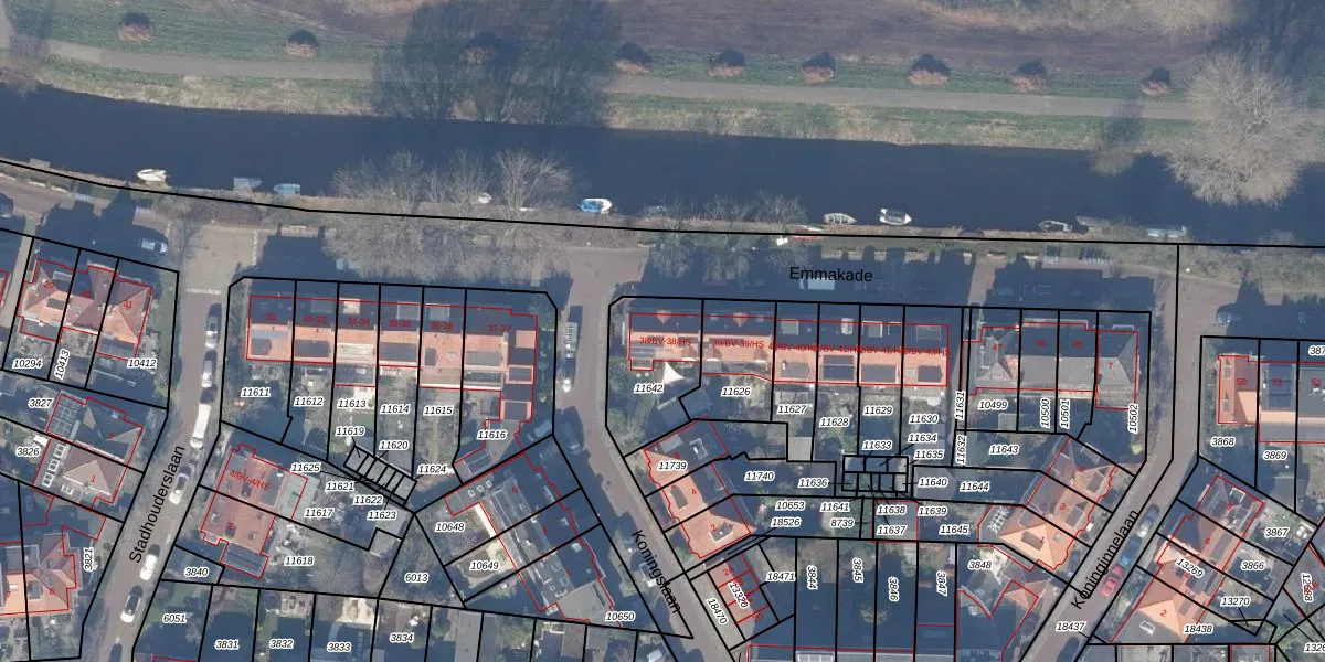 Het perceel waarop Emmakade 38-BV staat heeft een oppervlakte van 287 m². Dit is een middelgroot perceel. De perceeloppervlakte wordt geregistreerd door het Kadaster. Gedetailleerde informatie over de maten van dit perceel kunt u vinden in het rapport Kadastrale kaart met maatvoering van Emmakade 38-BV.