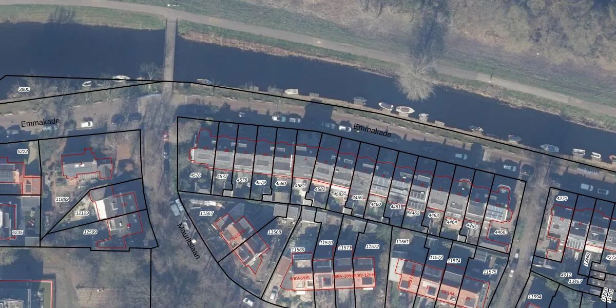 Het perceel waarop Emmakade 4 staat heeft een oppervlakte van 166 m². Dit is een middelgroot perceel. De perceeloppervlakte wordt geregistreerd door het Kadaster. Gedetailleerde informatie over de maten van dit perceel kunt u vinden in het rapport Kadastrale kaart met maatvoering van Emmakade 4.