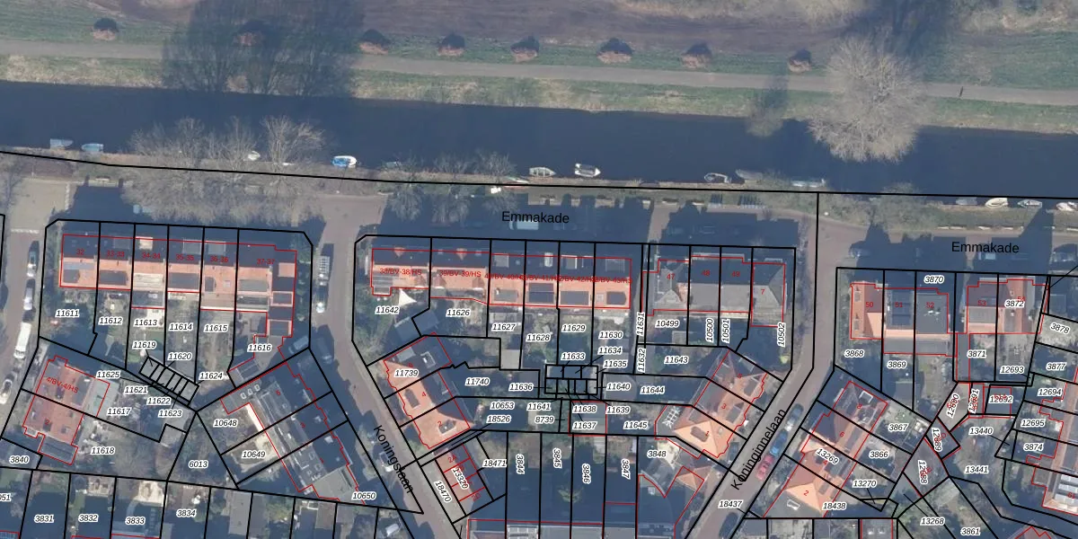 Het perceel waarop Emmakade 41-HS staat heeft een oppervlakte van 165 m². Dit is een middelgroot perceel. De perceeloppervlakte wordt geregistreerd door het Kadaster. Gedetailleerde informatie over de maten van dit perceel kunt u vinden in het rapport Kadastrale kaart met maatvoering van Emmakade 41-HS.