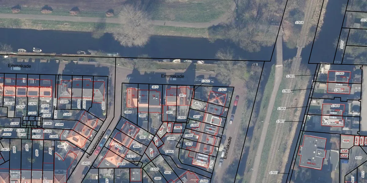 Het perceel waarop Emmakade 54 staat heeft een oppervlakte van 154 m². Dit is een middelgroot perceel. De perceeloppervlakte wordt geregistreerd door het Kadaster. Gedetailleerde informatie over de maten van dit perceel kunt u vinden in het rapport Kadastrale kaart met maatvoering van Emmakade 54.